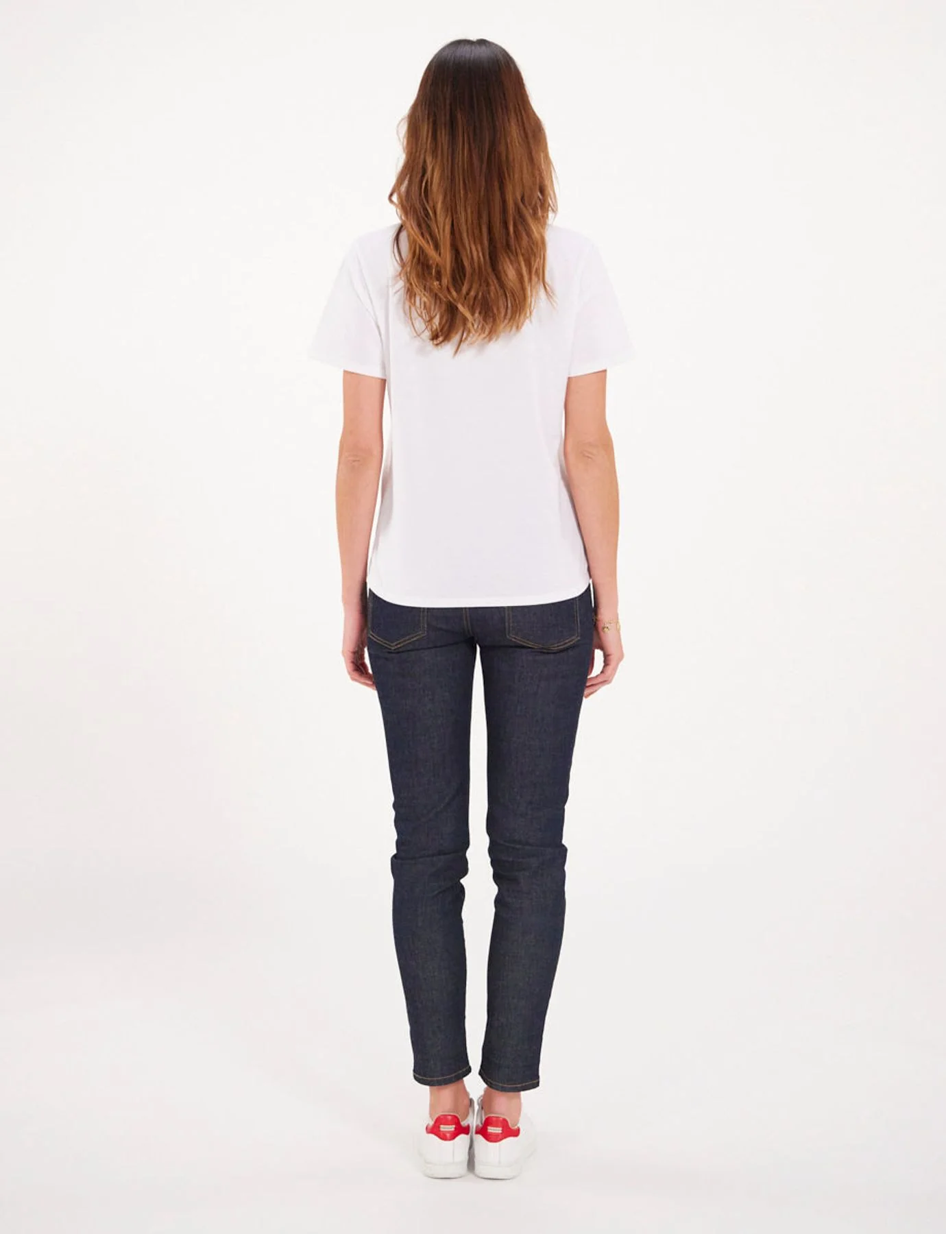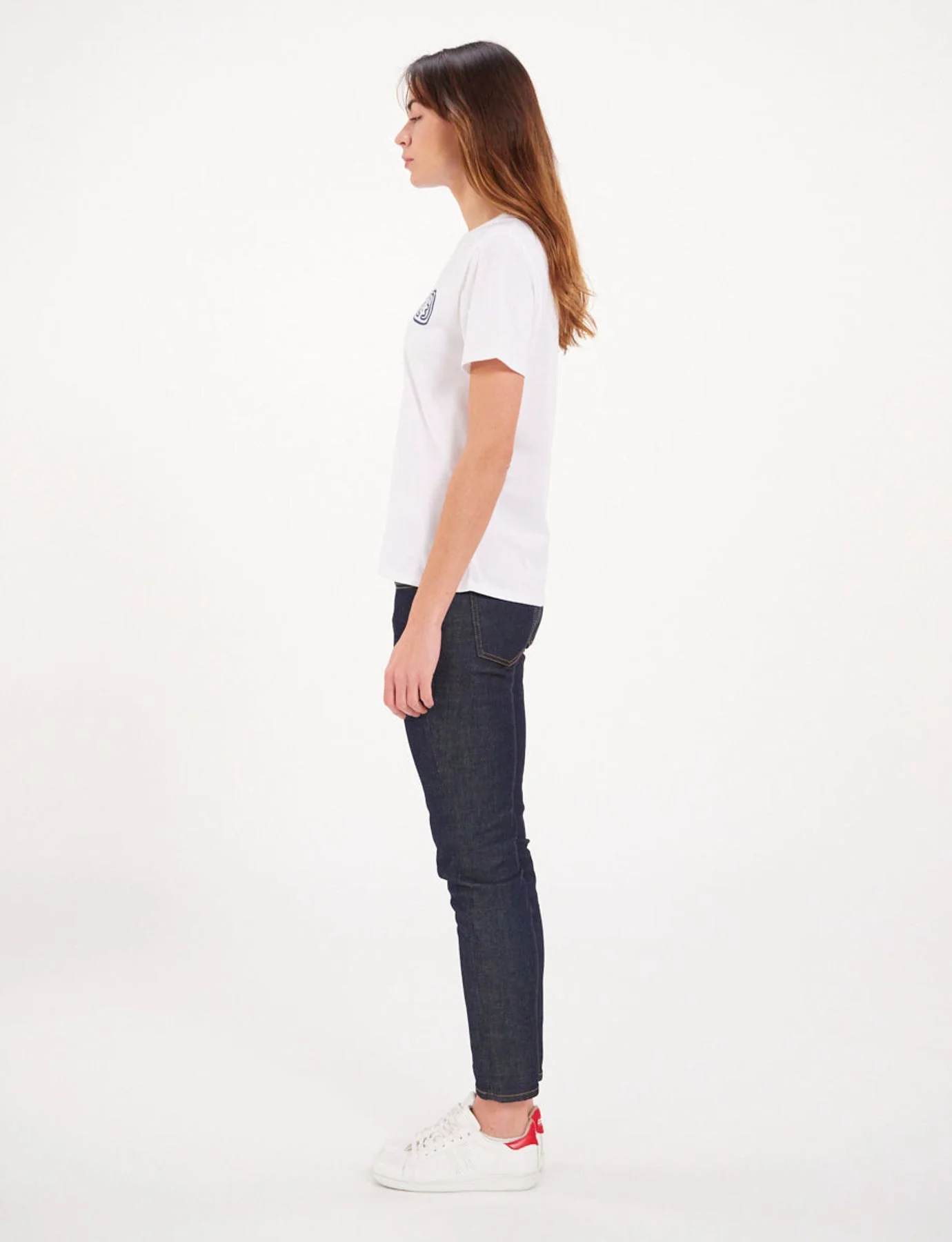 Découvrez notre nouveau t-shirt iconique Oscar blanc à col rond embelli par notre logo signature. Il a la singularité cette saison de porter la feuille de chêne symbole de la Maison Ines de la Fressange Paris, sérigraphiée sur la poitrine. Ce t-shirt en coton est original et facile à porter. Logo « Ines de la Fressange Paris » sérigraphie