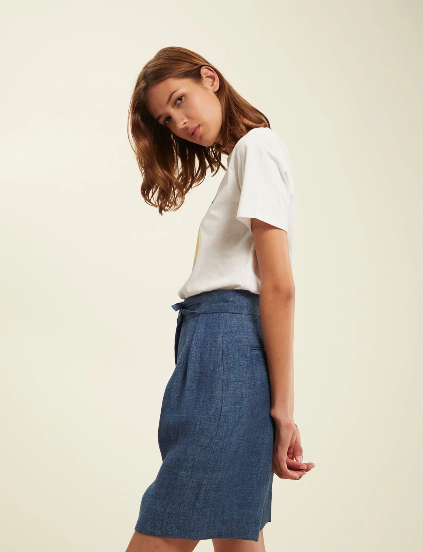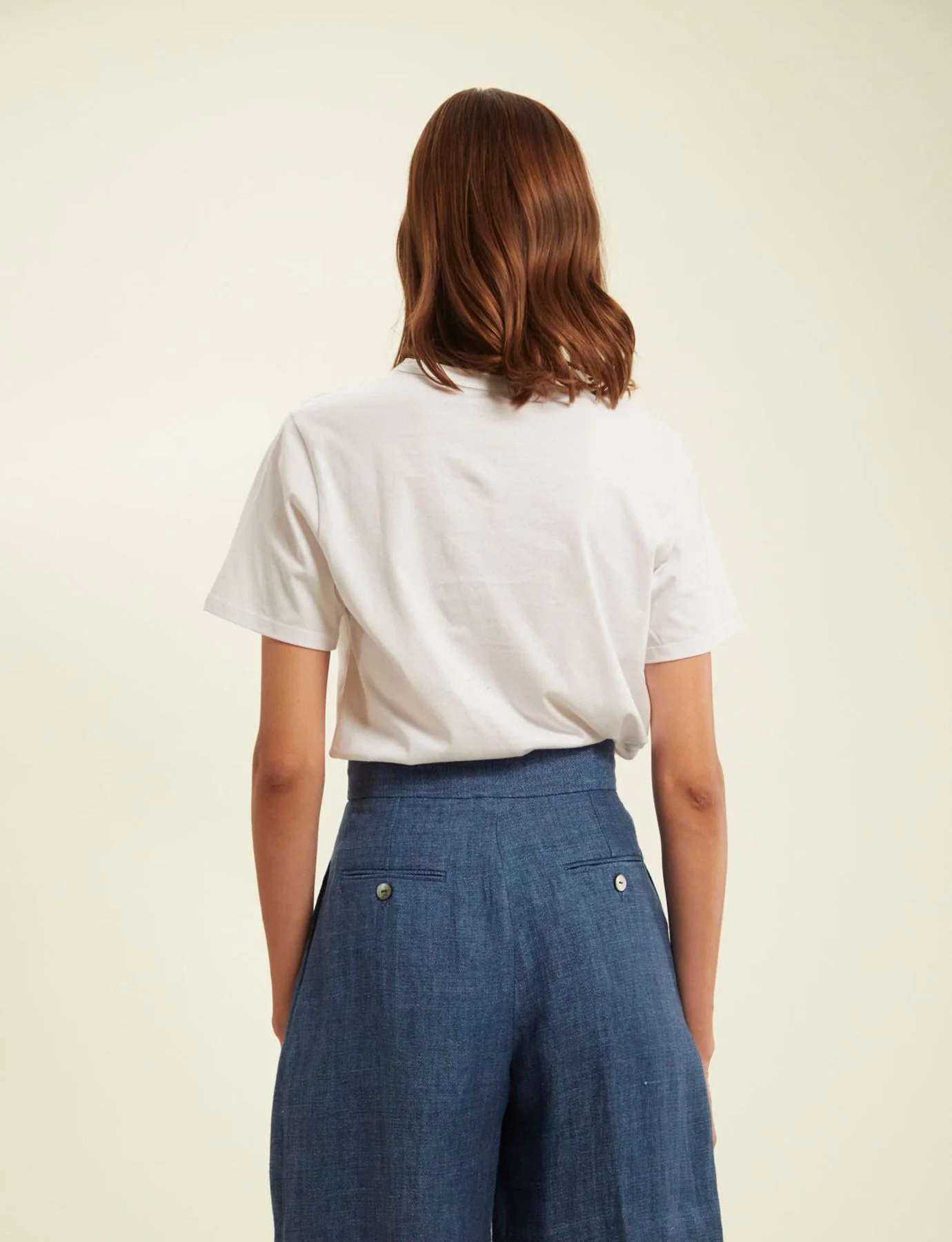 Découvrez le t-shirt Oscar blanc avec blason bleu ciel. Ce t-shirt en coton est original et facile à porter. T-shirt en jerseyCoupe droiteCol rondComposition: 100% CotonDesigned in ParisFabriqué en EuropeLa mannequin mesure 1m81 et porte du 36