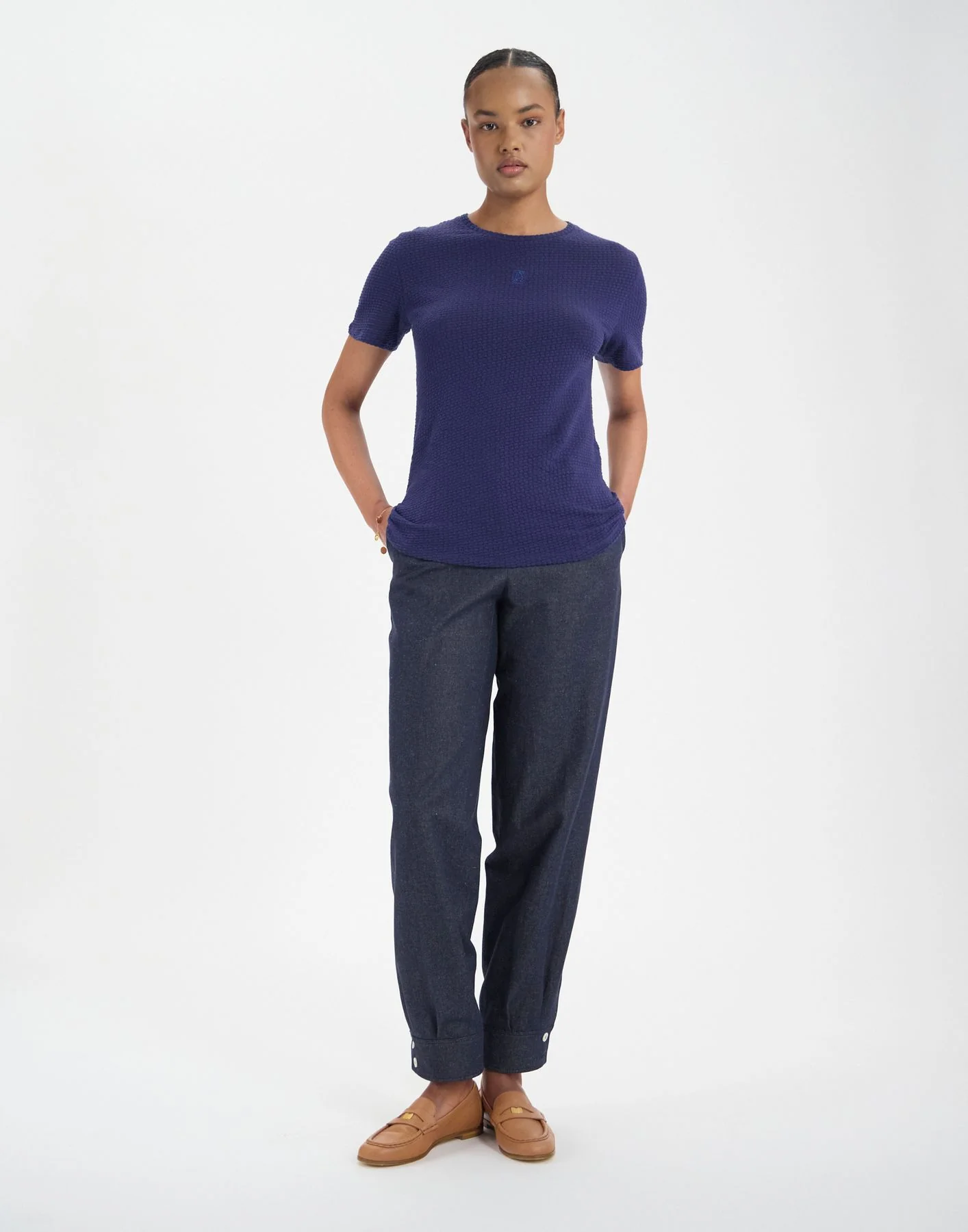 Un nouvel intemporel d’exception. Le T-shirt Paul, la coupe droite mais légèrement ajustée, à manches semi-courtes présente une encolure ronde soulignée ainsi que le célèbre emblême à feuille de chêne. Cette version en bleu marine est proposée dans un tissu en coton, avec une légère touche d’élasthane pour plus d’aisance. T-shirt Paul