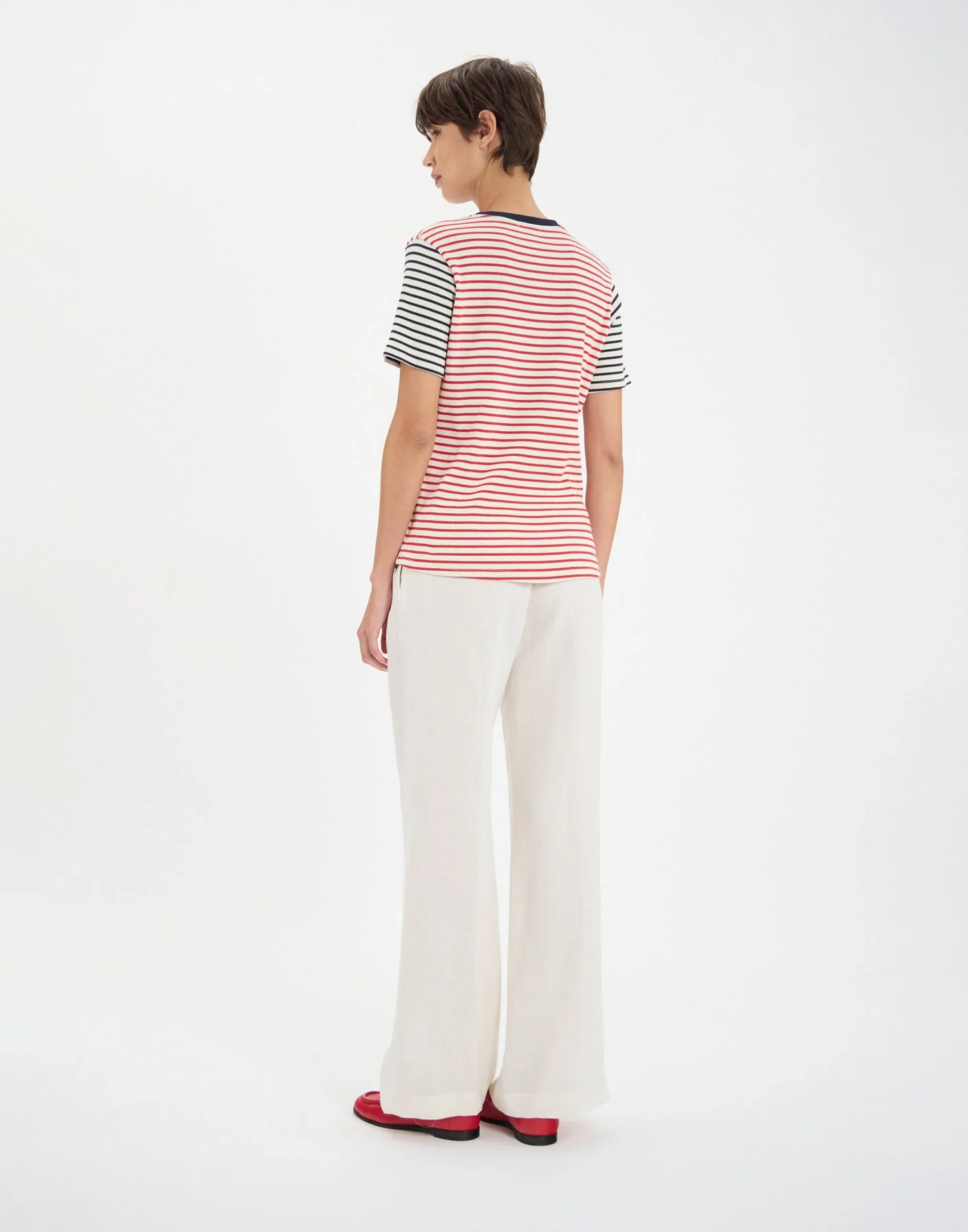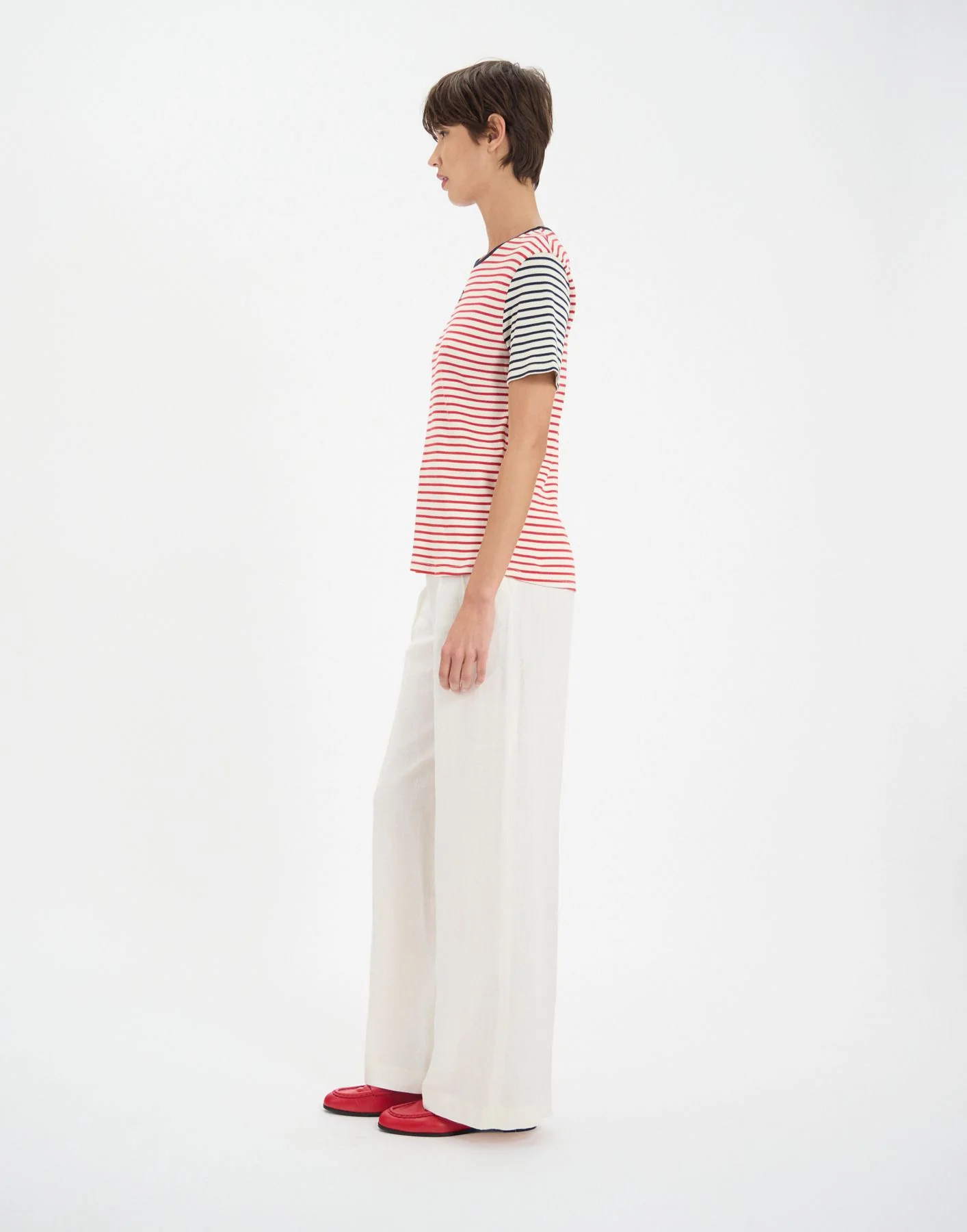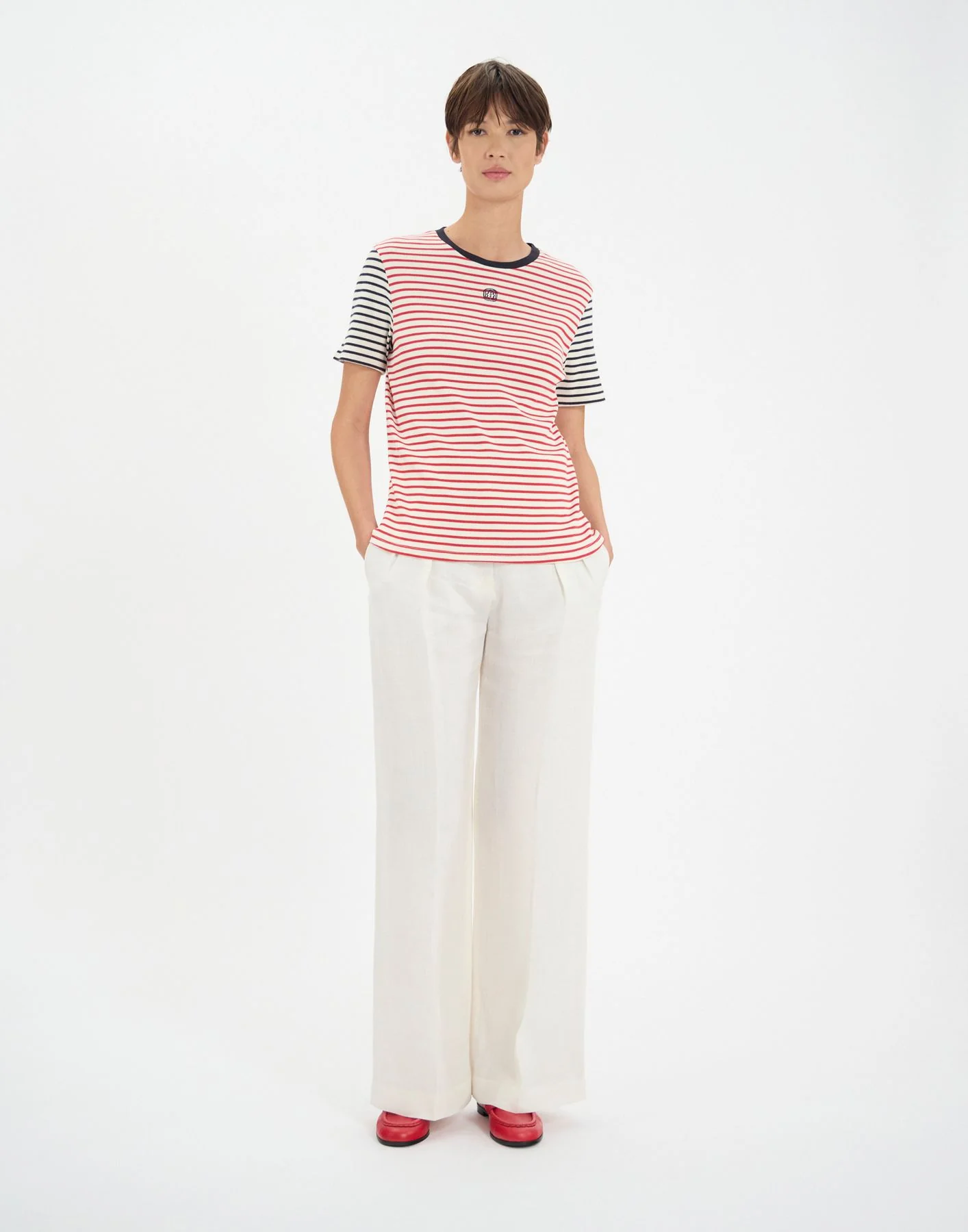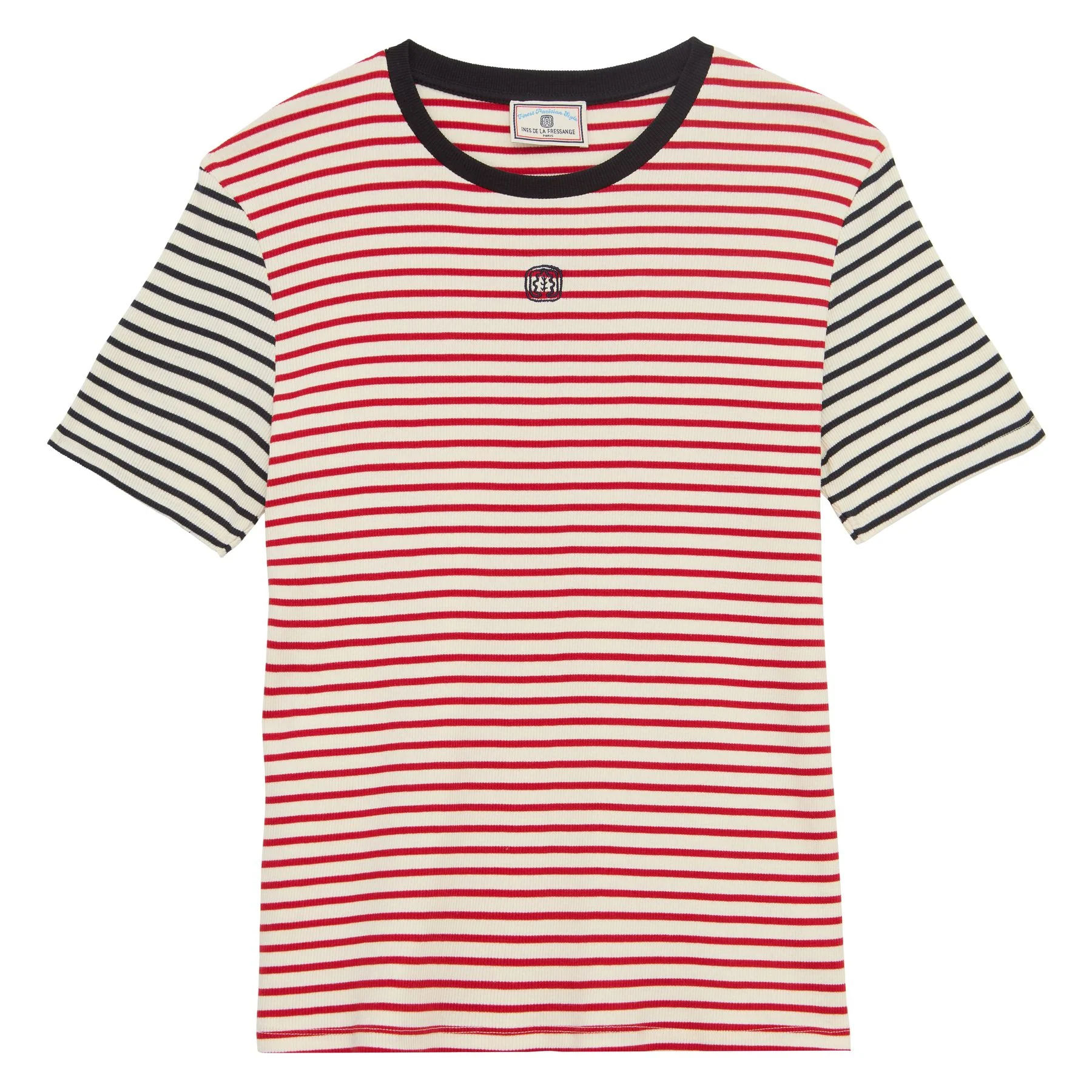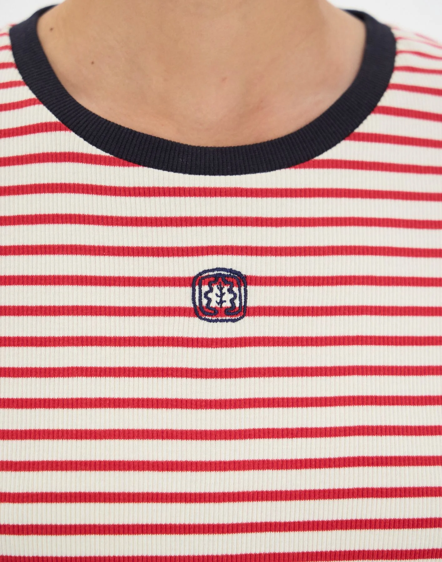 Un nouvel intemporel d’exception. Le T-shirt Paul, la coupe droite mais légèrement ajustée, à manches semi-courtes présente une encolure ronde soulignée ainsi que le célèbre emblême à feuille de chêne. Cette version rayée rouge est proposée dans un tissu en 100% coton biologique. T-shirt PaulCoupe droiteCol rondManches courtesDessiné à ParisFabriqué en Europe