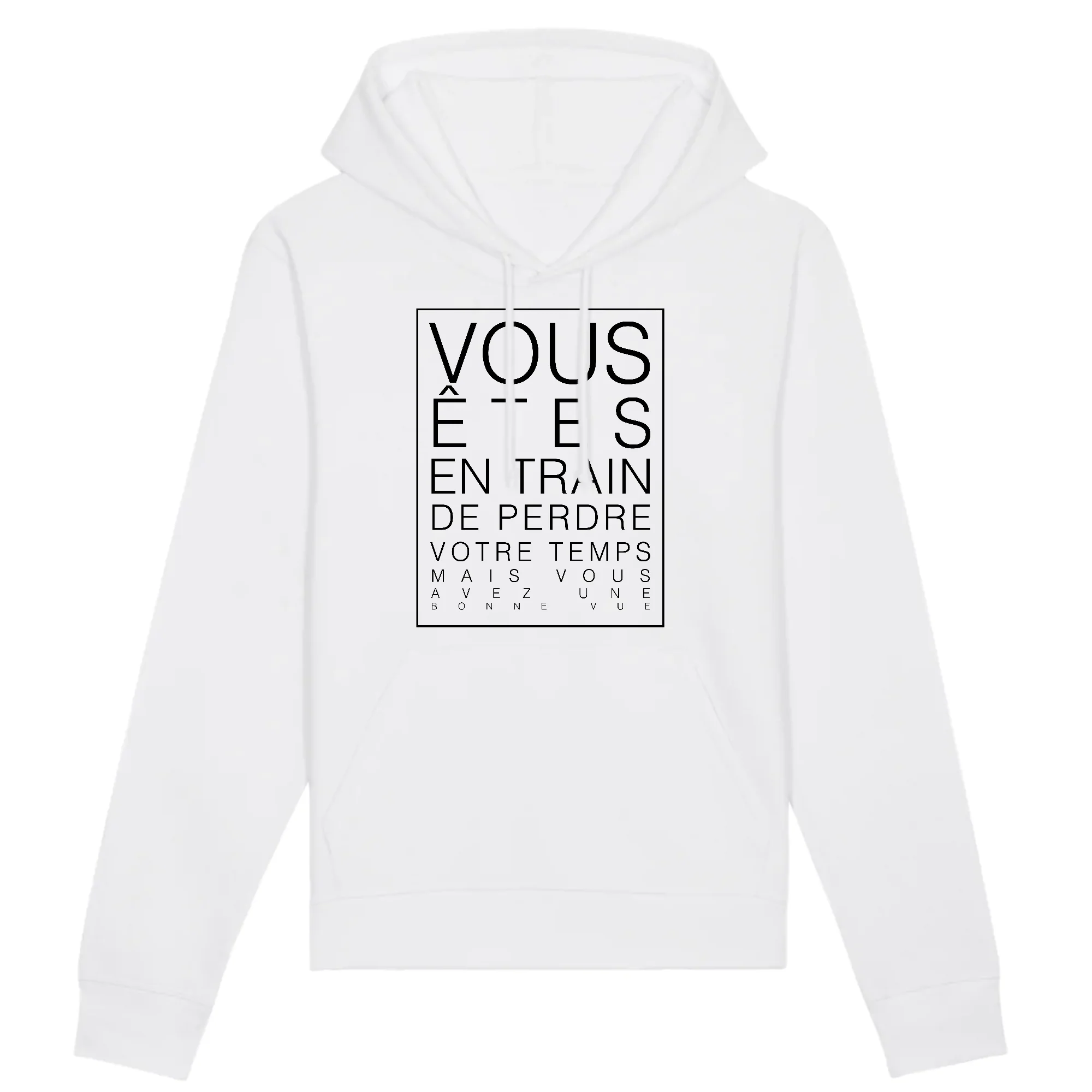 Sweat à capuche pour opticien Disponible du XS au XXL Existe en différents coloris Coupe moderne, ultra confortable Lavable à 30°C, produit retourné Un cadeau éthique et responsable 85% Coton Bio 🌱, 15% polyester recyclé Impression durable, toucher très doux Livré dans un sac matelassé en matière recyclée Imprimé puis expédié depuis notre atelier français