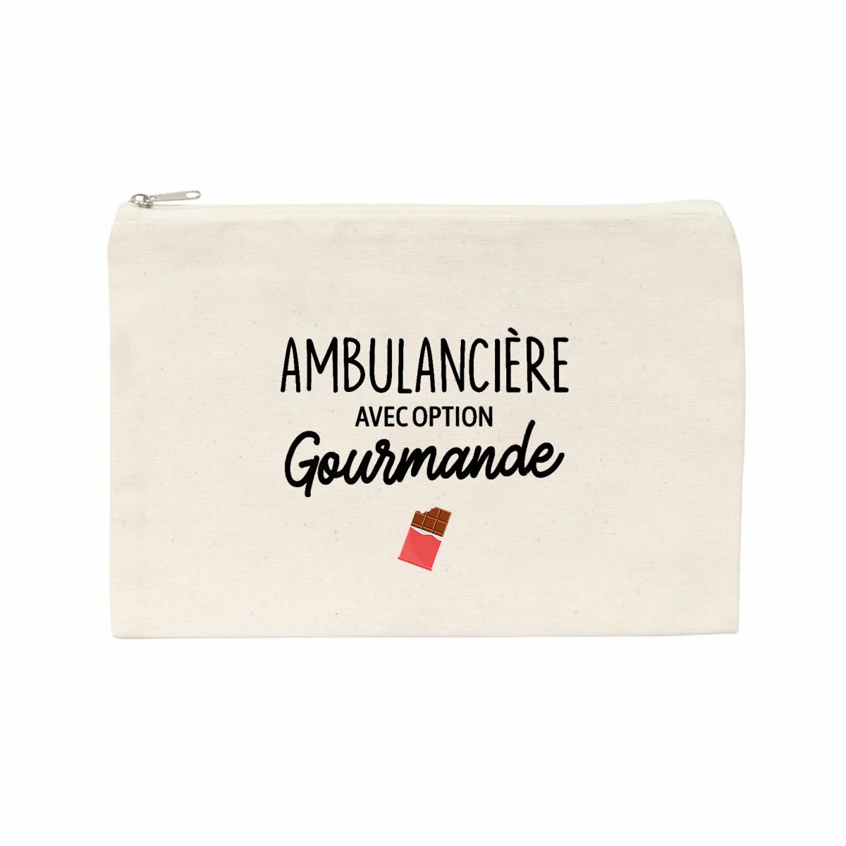 Une pochette d’excellente qualité Pochette 80% coton recyclé 🌱, 20% polyester recyclé Ouverture zippée Imaginée et imprimée en France Idée cadeau pour Ambulancière Dimensions : 21.5 x 16 cm Lavable en machine, 30°C Peut servir de trousse, porte-monnaie ou trousse à maquillage
